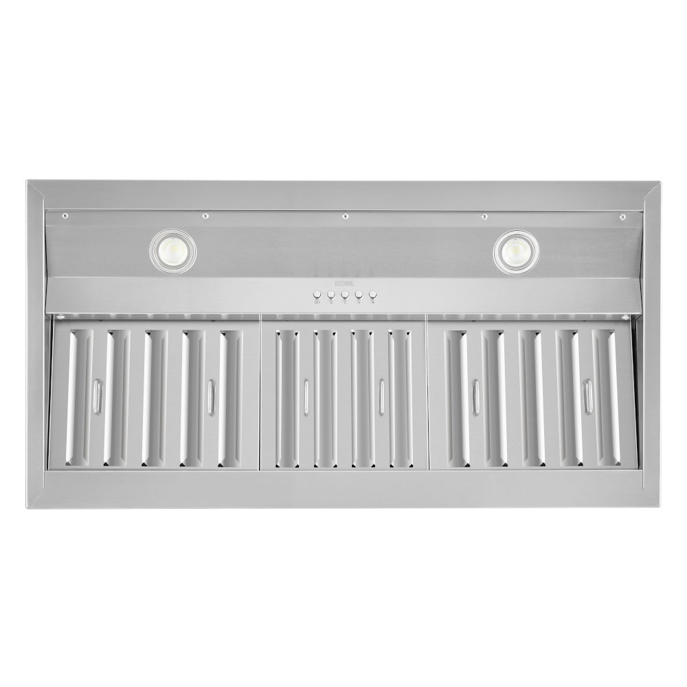 KOBE Range Hoods' INX26 Series built-in/ insert range hood fits with custom cabinetry without the need for a liner. Available in 30-inch and 36-inch. High performance with 630 CFM internal blower and operates quietly at 2.0 sone on QuietMode. This hood is beautifully handcrafted with 20-gauge stainless steel with satin finish and is equipped with 3-speed mechanical push button, dishwasher-safe baffle filters and LED lights. Optional liner INL36252B (34-7/16") is available to purchase.